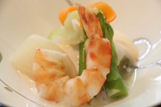 甘鯛焼霜、素麺、柳松茸、九条葱、紅芯大根